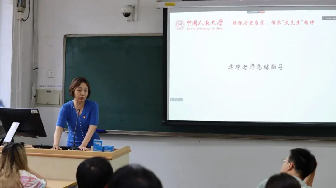 最后,李琼以“战火中的大学”为脉络作总结指导,回顾了从陕北公学到中国人民大学,人大人一路随军“学习在一线、斗争在一线”的历史,为大家上了一堂形象生动的党课。李琼提出了“成为一名博士,更要成为一名战士”的殷切期许,希望同学们能够从校史院史中汲取精神力量,增强历史自觉,成长为堪当大任的新时代人大人。