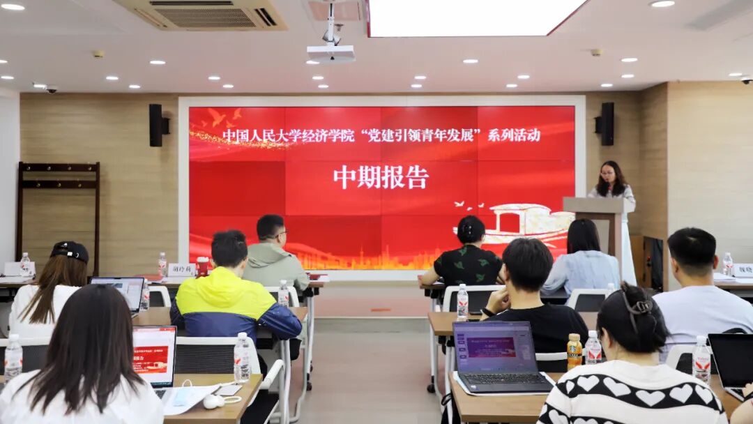 求实·党建引领实践调研各项目负责人依次汇报中期结果,党委学工部李佩洁、魏晓阳对汇报作点评。来自本科第一党支部、本科第三党支部、企业经济学、网络经济学硕士党支部、政治经济学博士第一党支部的各项目负责人介绍了所属项目的中期成果。