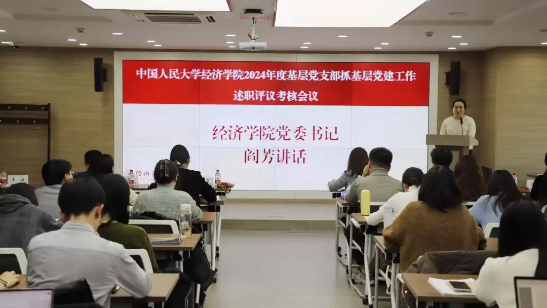为深入学习贯彻党的二十届三中全会精神和习近平总书记关于党的建设的重要思想以及基层治理的重要论述,落实基层党建工作责任制,树牢大抓基层的鲜明导向,2025年2月19日下午,经济学院2024年度党支部书记抓基层党建工作述职评议考核会议在明德主楼728会议室召开。学院党委书记阎芳出席会议并讲话。参加会议的还有学院党委委员、党支部书记、师生代表共计70余人。本次会议由学院党委副书记范志勇主持。